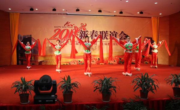 紅梅迎春笑,玉兔出月歡,聯誼會氣氛熱烈,歡樂祥和。聯誼會在《歡樂中國年》歌舞表演中拉開了帷幕。此次新春聯誼會上,由江蘇數字信息產業園 無錫惠山軟件外包園員工們自編自導自演的勁舞、話劇小品、民族歌舞等穿插其中,讓現場的企業家精英的情緒持續高漲。一陣又一陣激動人心的游戲、抽獎環節,更是將全場氣氛推向高潮。據悉,此次聯誼會共安排4次抽獎環節,獎品包括高清銳視N3播放器兩臺、手持電視6臺、手表手機8部以及人體分析儀20個。