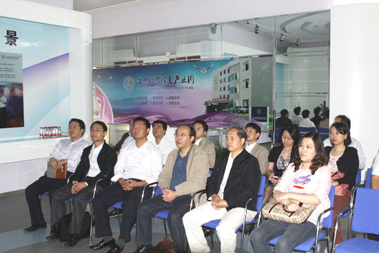 10月9日,無錫市“三創載體”論證小組蒞臨江蘇數字信息產業園調研,論證小組由房管、國土、建設、發改、規劃、科技等各個部門聯合組成。論證小組首先參觀了江蘇數字信息產業園展廳,江蘇數字信息產業園總經理賈天喜向論證小組詳細介紹了園區各項情況,隨后論證小組就園區“三創載體”申報事宜進行了詳細詢問,并對具體問題進行了指導。論證小組表示江蘇數字信息產業園是無錫市重要園區,也是及其特殊的園區,自主經營、自負盈虧,本次論證小組蒞臨園區是為進一步理順關系,并加深對園區的了解,園區的相關問題相關部門非常重視,力爭盡快解決。