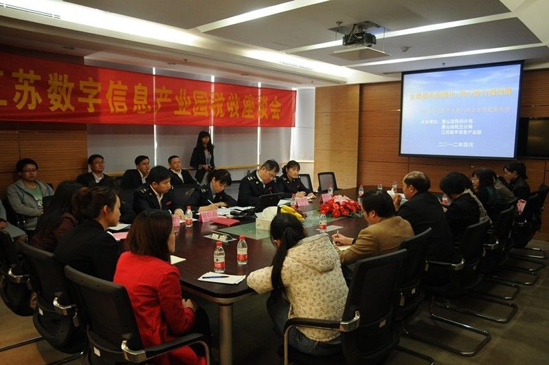 為進一步增強稅企溝通,助推企業發展,4月19日,江蘇數字信息產業園在清華創新大廈二樓大會議室舉辦了一場入園企業稅收座談會,特邀惠山國稅四分局堵局、惠山地稅五分局俞局及相關科室股長等領導前來講解,園區發展有限公司總經理賈天喜和力合光電、第六元素等近30家入園企業法人代表及財務人員參加座談會。園區發展有限公司財務部部長顧仁娣主持會議。