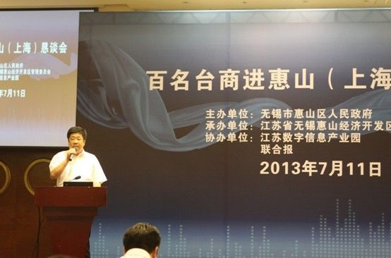 7月11日下午,由惠山區(qū)人民政府主辦、惠山經(jīng)濟開發(fā)區(qū)管委承辦、江蘇數(shù)字信息產(chǎn)業(yè)園和聯(lián)合報協(xié)辦的“百名臺商進(jìn)惠山”活動啟動儀式暨懇談會在在上海華納酒店國際會議中心舉行。區(qū)領(lǐng)導(dǎo)楊建平、吳燕、沈偉良、浦明峰、張勝良、秦萬興等,臺資企業(yè)代表劉陳華、黃進(jìn)能、胡寶妮等,還有各個園區(qū)的負(fù)責(zé)人出席了會議。會議由惠山區(qū)副區(qū)長吳燕主持。