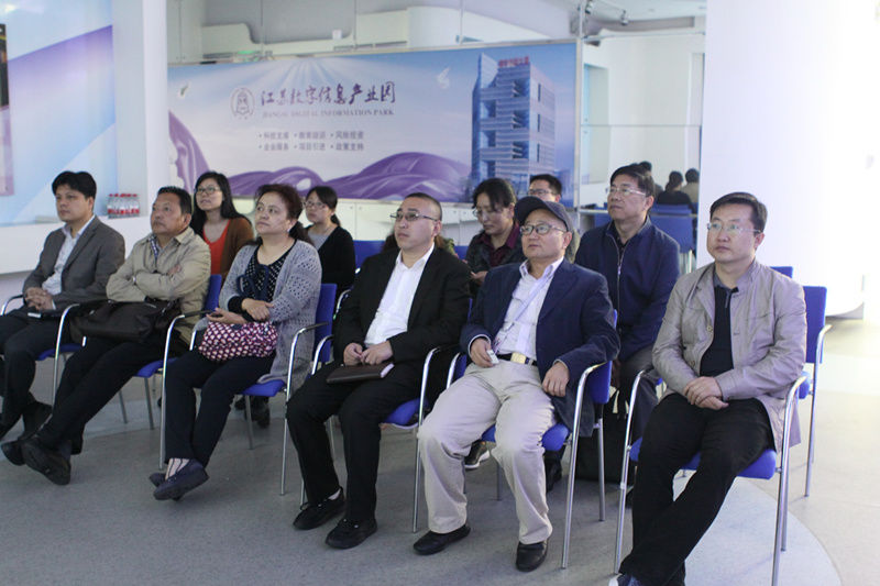 調研組首先參觀了園區展廳。由江蘇數字信息產業園辦公室副主任朱海燕向大家詳細介紹了數字園的基本情況、取得的成績及未來發展目標。八年來,數字園傳承深圳清華大學研究院創新模式,強調機制靈活性與市場導向性,并依托五大特色服務平臺在引進人才、項目、技術等方面都取得了不錯的成績,得到了上級領導的認可,真正實現了企業扎根惠山、服務區域經濟社會發展的目標。