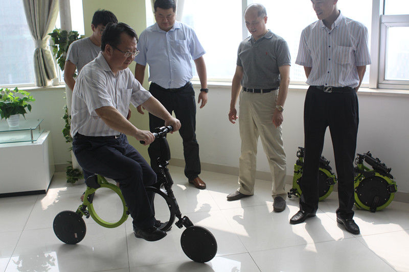 隨后,調研小組參觀了園區的無錫科樂威爾智能科技有限公司。無錫科樂威爾智能科技有限公司董事長何宇波介紹了公司近兩年的發展情況和研發情況,并介紹了最新研發的產品“兜納系列K1“。該產品造型小巧,四步實現全折疊,折疊后大小僅為2A4紙;整車僅為9.8KG,是傳統電動車重量的十分之一;隱藏式電池,通過智能APP可實現人車互聯,GPS定位等特點,是全球首創可穿戴式智能交通工具。楊建平主任饒有興致的在現場試騎了“兜納“,他興奮地表示電動車是一個老行業,但科樂威爾賦予了這個行業新的生命,他強調對于科研型企業開發區將給予更大的支持,技術創新會讓傳統產業煥發活力,并實現超越。
