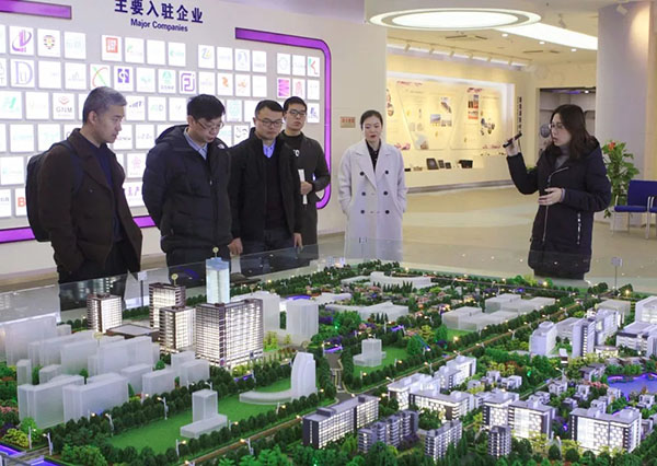 在園區展廳,周主任首先向考察團一行介紹了園區的整體概況,接著就園區經過多年發展所形成的“三大產業”,“五大平臺”,“九大載體”做了詳細講解并就考察團提出的問題進行了細致的回答。