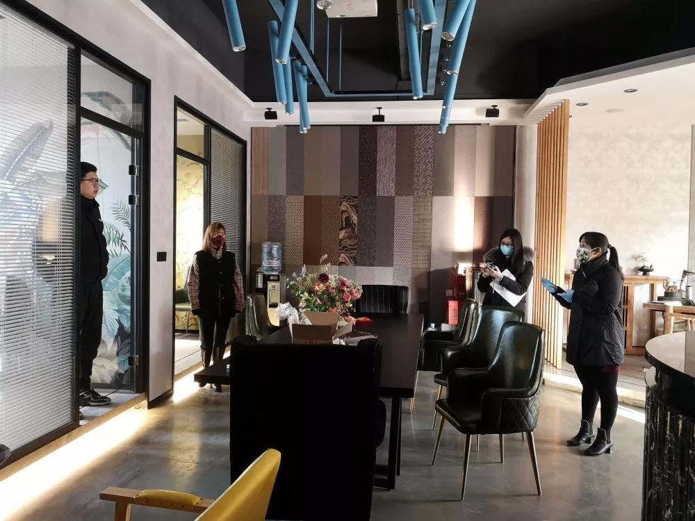 ▲走訪期間發現辦公載體有企業人員,賈總與郭總告知并強調企業不得提前復工,須向政府提出申請得到批準后方可復工,并勸說企業人員配合好防控工作,盡早離開。