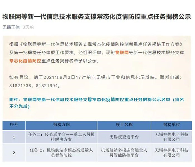 近日,無錫市大數(shù)據(jù)管理局和無錫市工信局公布的“2021年度無錫市數(shù)字經(jīng)濟(jì)和智慧城市扶持資金大數(shù)據(jù)和云計(jì)算項(xiàng)目”、“物聯(lián)網(wǎng)等新一代信息技術(shù)服務(wù)支撐常態(tài)化疫情防控創(chuàng)新重點(diǎn)任務(wù)” 公示名單中,園區(qū)企業(yè)無錫神探電子科技有限公司成功入圍,其自主研發(fā)的”社區(qū)大腦精細(xì)化管理平臺(tái)”項(xiàng)目入選大數(shù)據(jù)和云計(jì)算平臺(tái)型項(xiàng)目類別,“無錫疫查通平臺(tái)”項(xiàng)目、“機(jī)場(chǎng)航站多模態(tài)高通量人員智能防控平臺(tái)”項(xiàng)目成功揭榜社會(huì)防控類和重點(diǎn)場(chǎng)所防控類任務(wù)。
