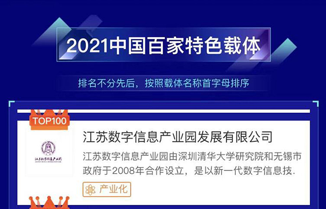 喜訊|江蘇數字信息產業園入選2021中國百家特色載體