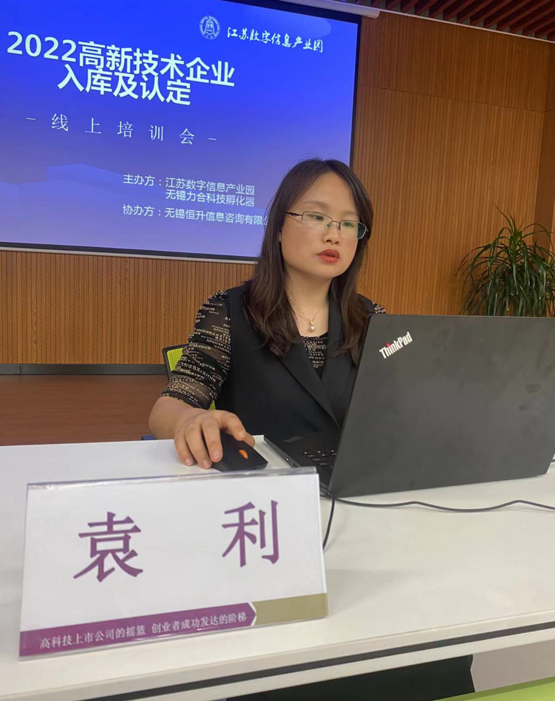為助力企業更好地了解高新技術企業最新政策,掌握申報要求、流程及注意事項,提高通過率,5月19日,江蘇數字信息產業園特邀無錫恒升信息咨詢有限公司總經理袁利來園區舉辦“2022高新技術企業入庫及認定線上培訓會”。