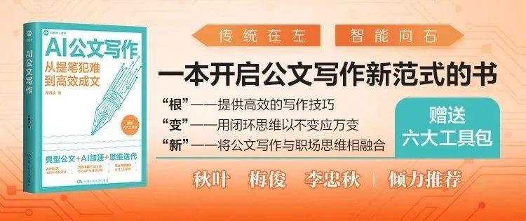這本書不是教你依賴工具,而是教你如何用結(jié)構(gòu)化思維駕馭AI。它既保留了公文寫作的傳統(tǒng)智慧,又系統(tǒng)化展示了如何用AI工具提升效率。更重要的是,它教會你在“人機(jī)協(xié)作”中用邏輯框架保持主動權(quán)——這才是未來職場人的核心競爭力。